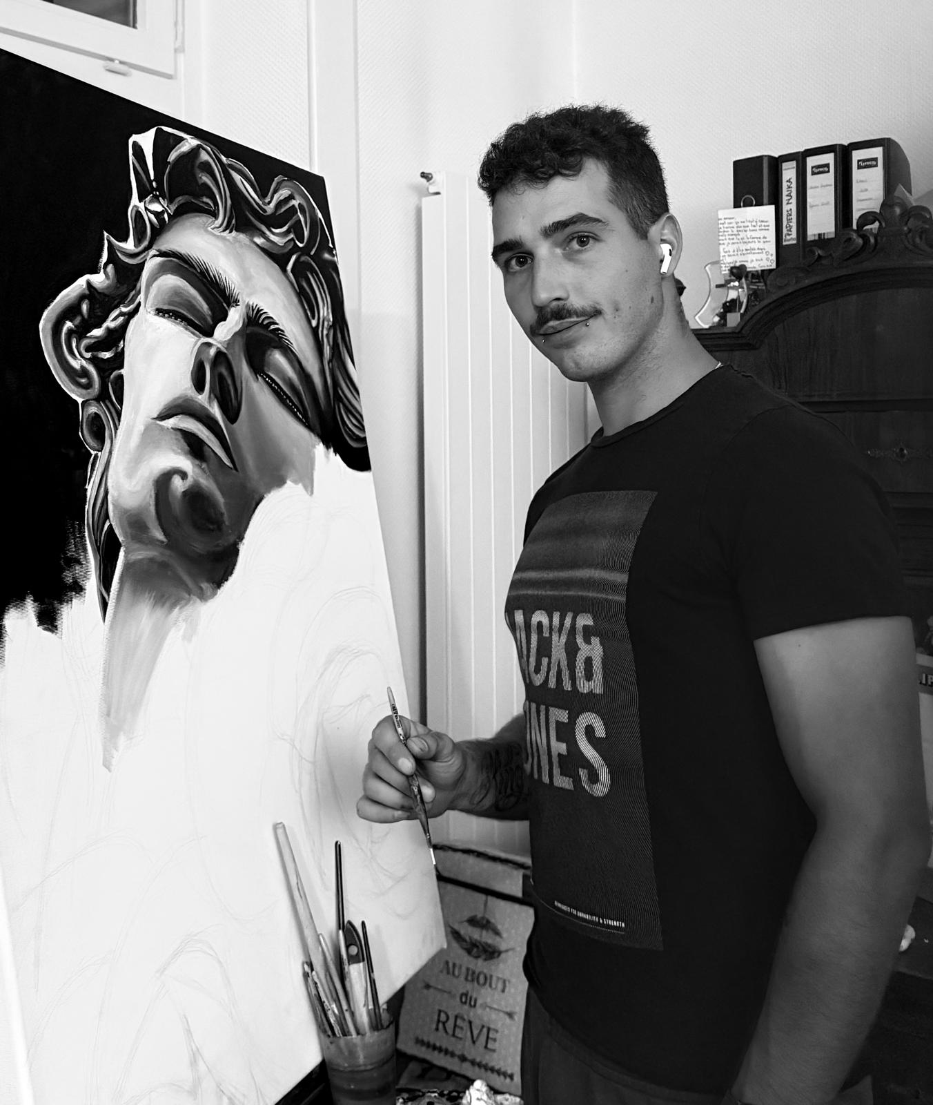 Depuis mon enfance, j’ai toujours été attiré par l’art. À l’école, je préférais dessiner plutôt qu’écouter mes professeurs, comme si créer faisait déjà partie de moi. Cette passion, je la dois aussi à mon grand-père, Jean-Paul Rapin, lui-même peintre, qui m’a transmis l’amour de l’art. Peindre, pour moi, ce n’est pas un simple passe-temps : c’est une évidence, une manière d’exister.